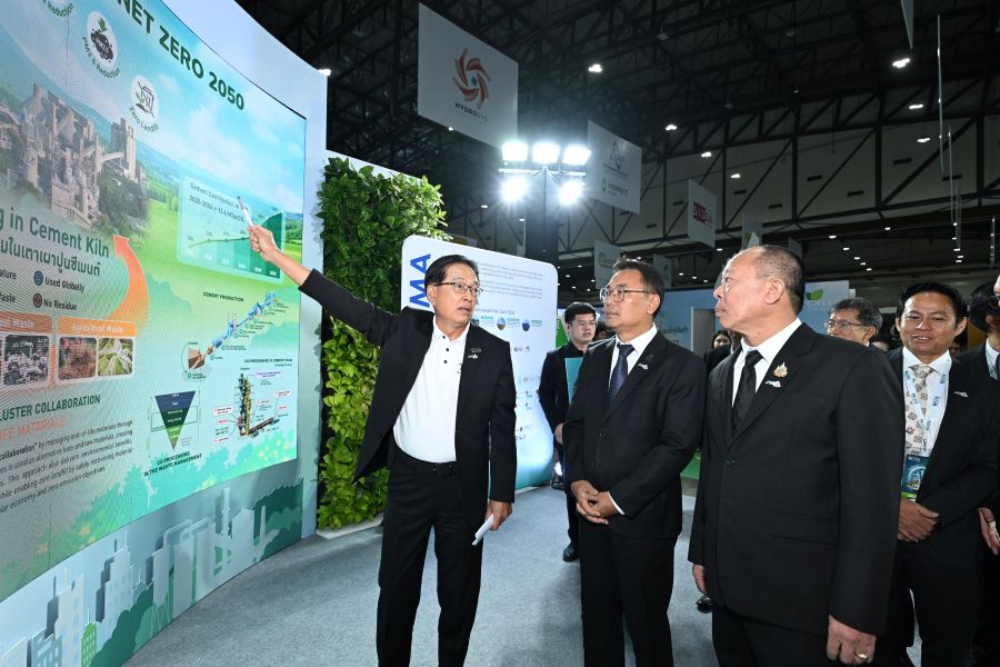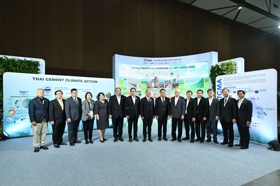Khun Nopadol Ramyarupa, Vice Chairman of Thai Cement Manufacturers Association (TCMA) together with the TCMA Board, welcomed Khun Surapong Namchairujipong, Vice Minister for Industry and Dr. Chana Poomee, Vice Chairman of the Federation of Thai Industries (FTI) to TCMA’s booth at the Asia Environmental and Waste Management Expo 2026. During the visit, TCMA highlighted the cement industry’s role as a key national mechanism in supporting systematic waste management, reducing greenhouse gas emissions, and creating economic value through co-processing in cement kilns.