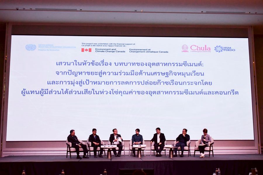 Khun Teerapol Tiravasin, Chair of Working Committee TCMA on Circular Economy, Thai Cement Manufacturers Association (TCMA) shared industry insights during the panel discussion “ Role of the Cement Industry: From Waste Challenges to Circular Economy Collaboration and the Path toward Greenhouse Gas Reduction Goals.” at the public hearing on the draft action plan “Enhancing Circularity and Co-processing for Decarbonizing the Cement and Concrete Value Chain in Thailand” under the project Decarbonization of the Cement and Concrete Sectors in Thailand, with aimed to advance circular economy practices, strengthen sustainable waste management through co-processing in cement kilns, and accelerate greenhouse gas reduction in line with Thailand’s Net Zero ambitions, organized by the United Nations Industrial Development Organization (UNIDO) in collaboration with Center of Excellence on Hazardous Substance Management, Chulalongkorn University.